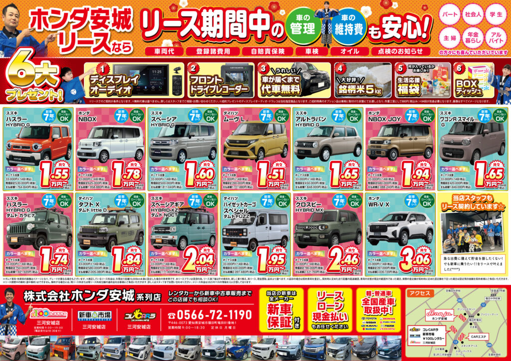 リースって何?リース本当にお得なの?安いの?なんで?などなど、ホンダ安城のスタッフへいろいろ話してみてくださいね♪